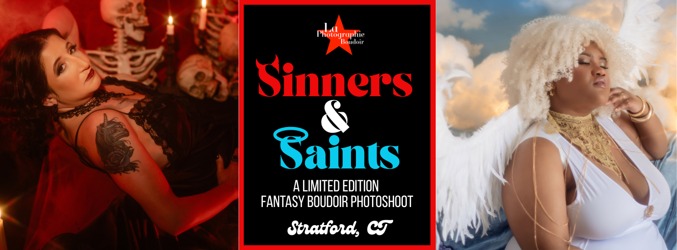 Sinners & Saints sessions take place in June 2026 only at my Victorian studio in Stratford, Connecticut.